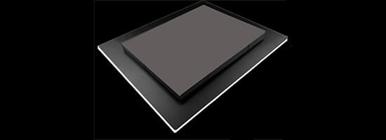 Foam core, foam board, or paper-faced foam board is a lightweight and easily cut material used on the back side of a print to relieve (show a separation) from the wall. Double-sided tape or mounting hardware may be used for attachment to the wall.